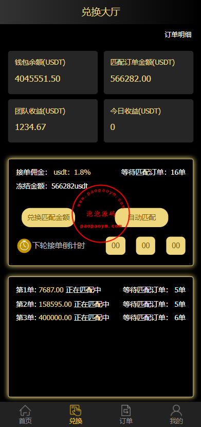 二开版USDT抢单系统/自动匹配订单/USDT跑分系统