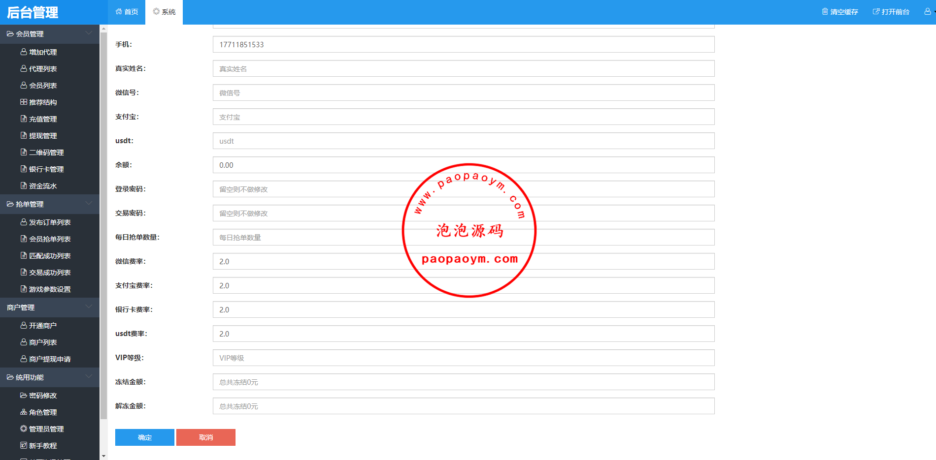 系统是以前巅峰系统二开的,前端去除微信支付宝改为USDT了