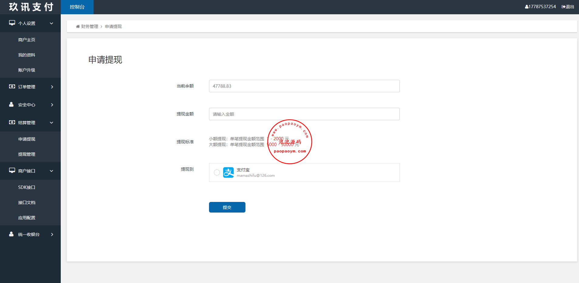 日账单、月账单,系统清晰记录所有收款数据,支持网站商户后台以及公众号和