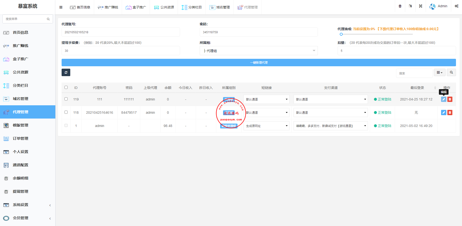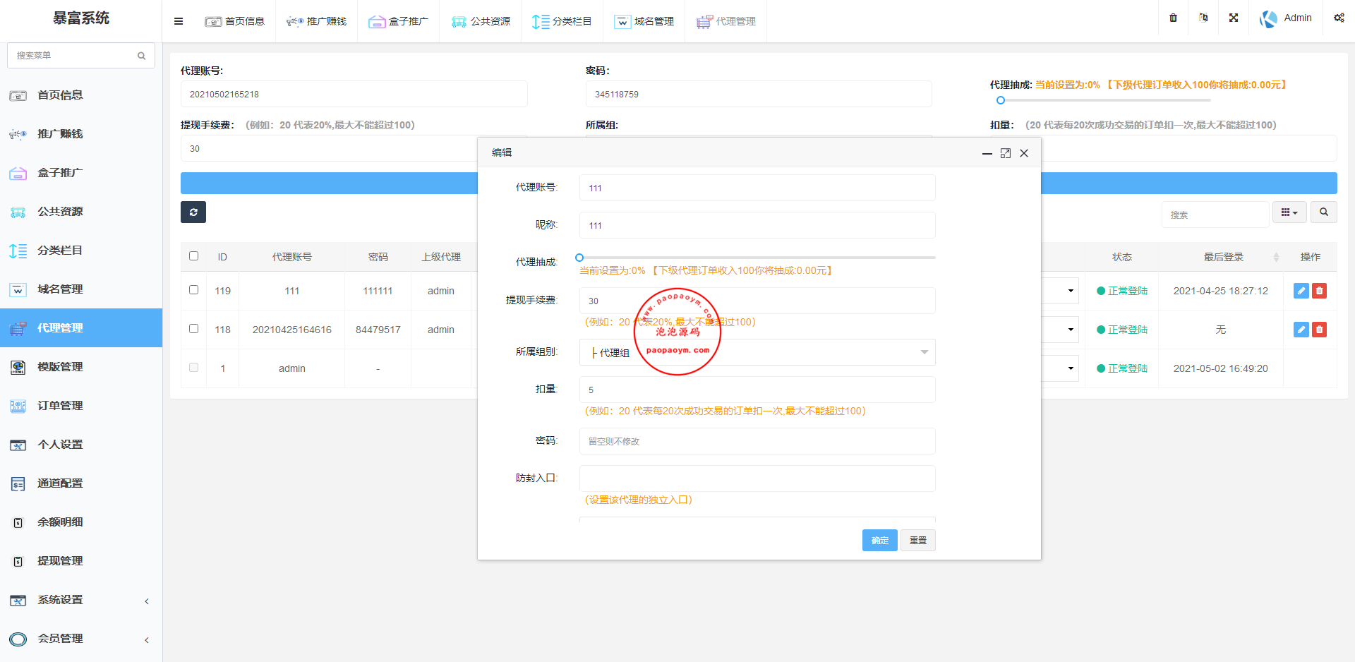 代理同理设置抽成。总之这个功能就一句话!台主不需要开扣量功