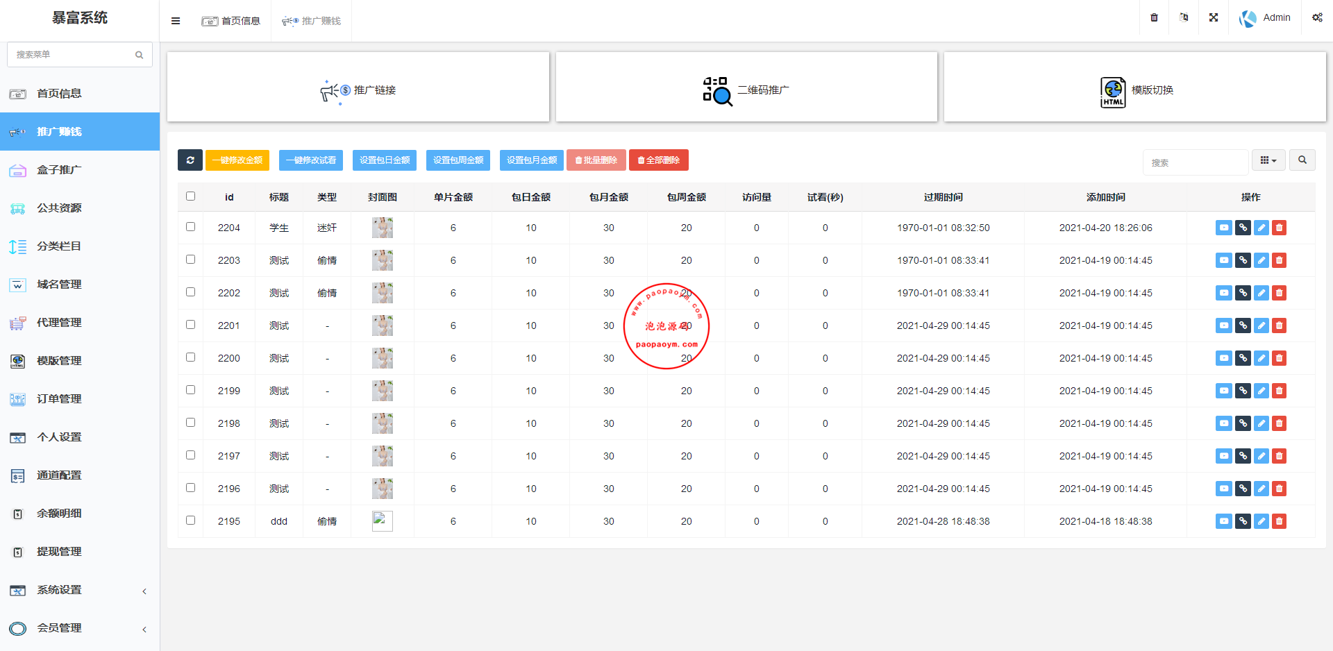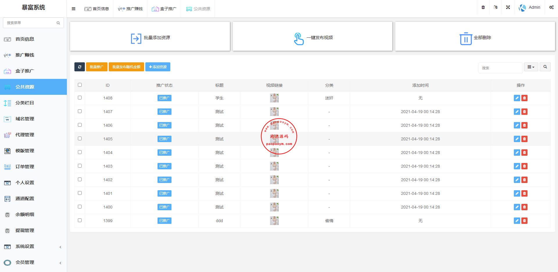 5.批量添加资源,批量发布随机金额资源,一键发布资源,添加资
