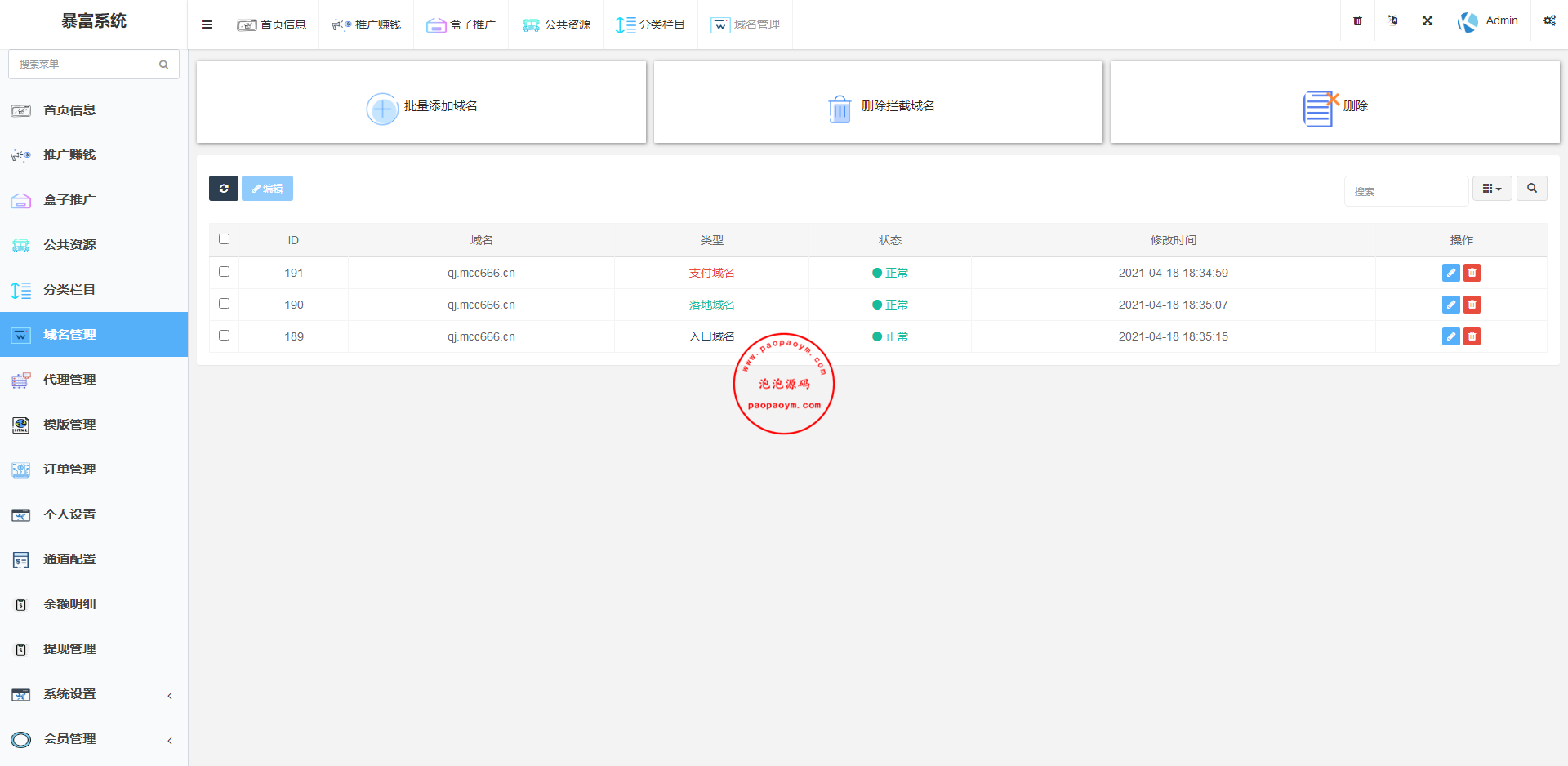 7.域名管理 可设置 入口防封 入口域名 落地域名 域名库功能可通过