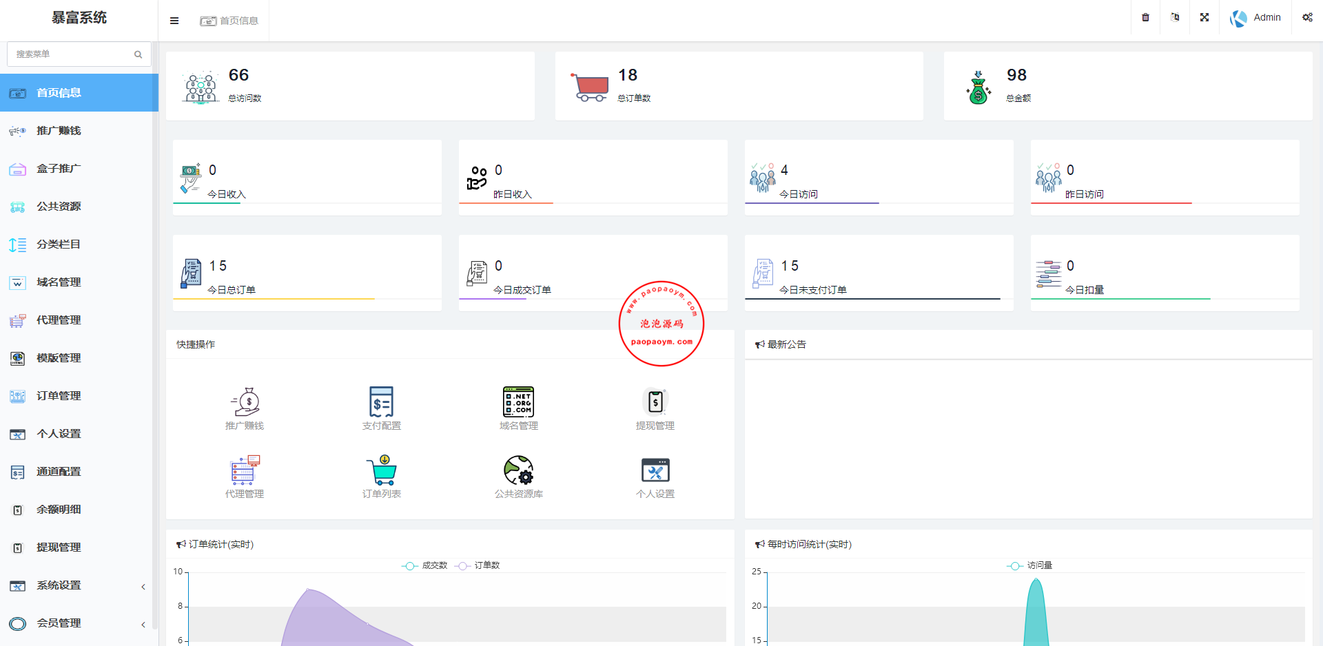 1.首页全时实统计数据,无需手动点击同步!精美ui设计,大数据
