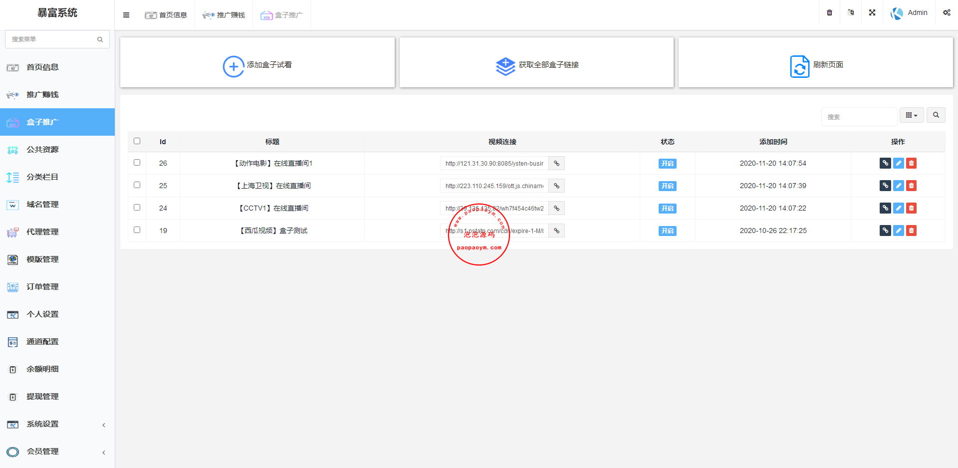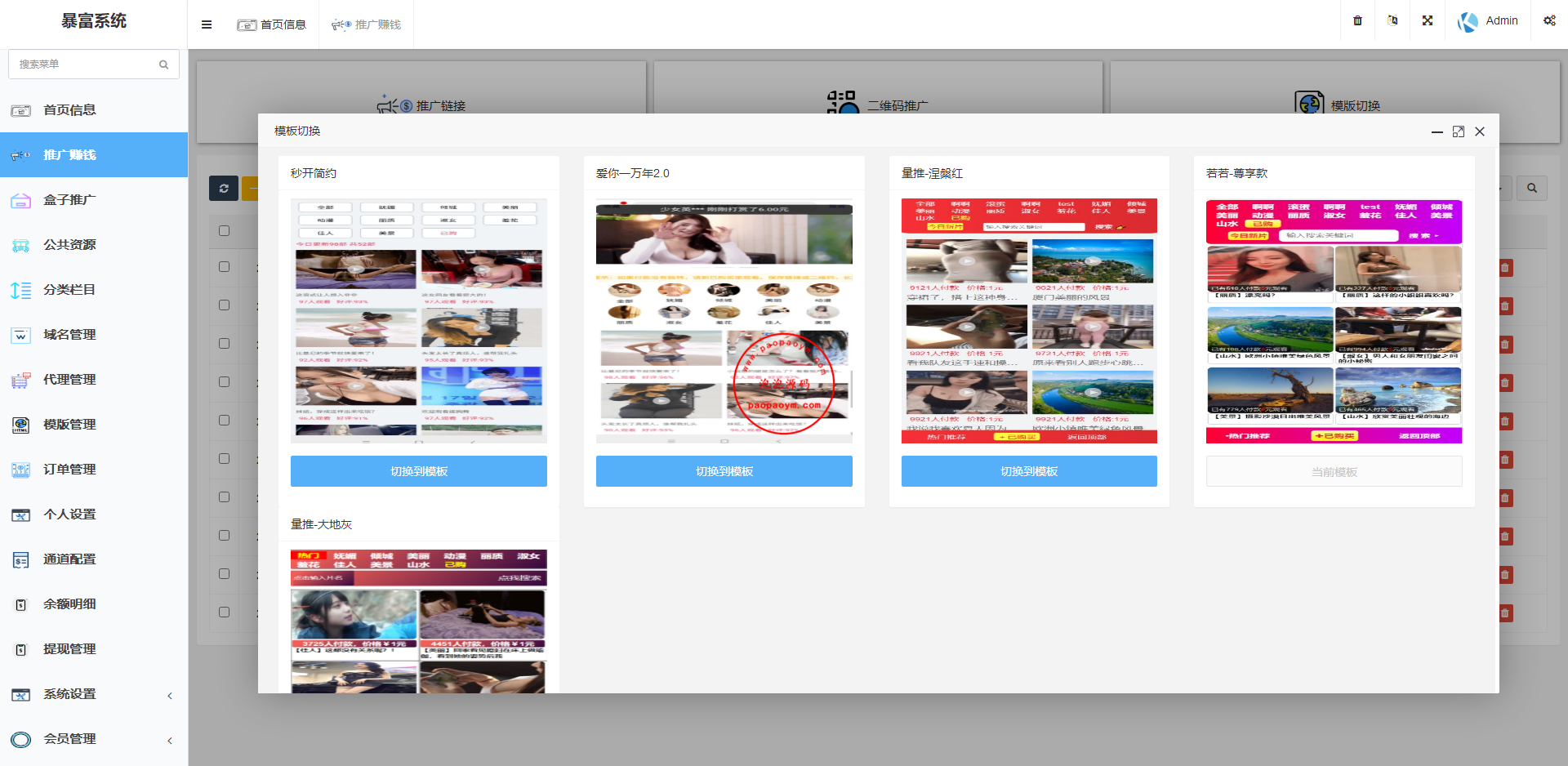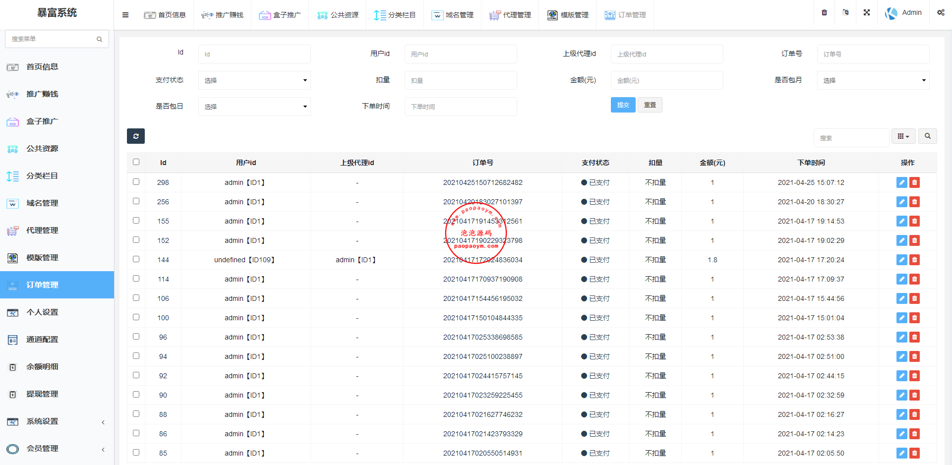 11.多级分销功能,台主可往下开通代理设置抽成,代理发展下级