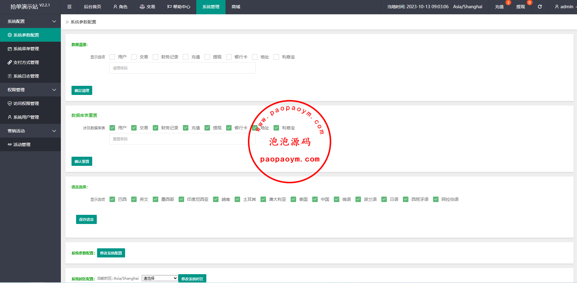 系统支预约爆单、叠加组、余额宝、时区设置等功能