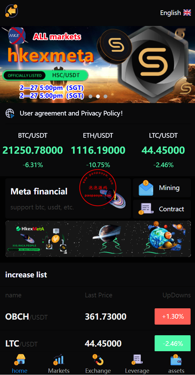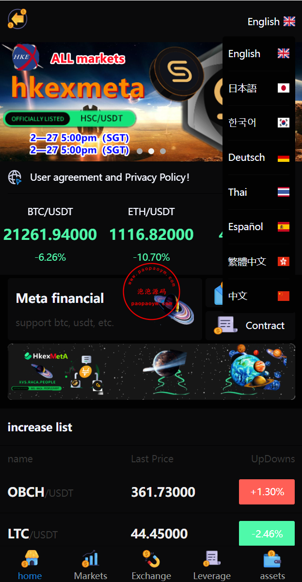 此套是别人全新二开UI的多语言交易所,新增元宇宙理财功能