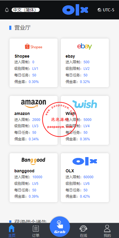 多语言抢单刷单系统/海外抢单刷单/派单/订单自动匹配