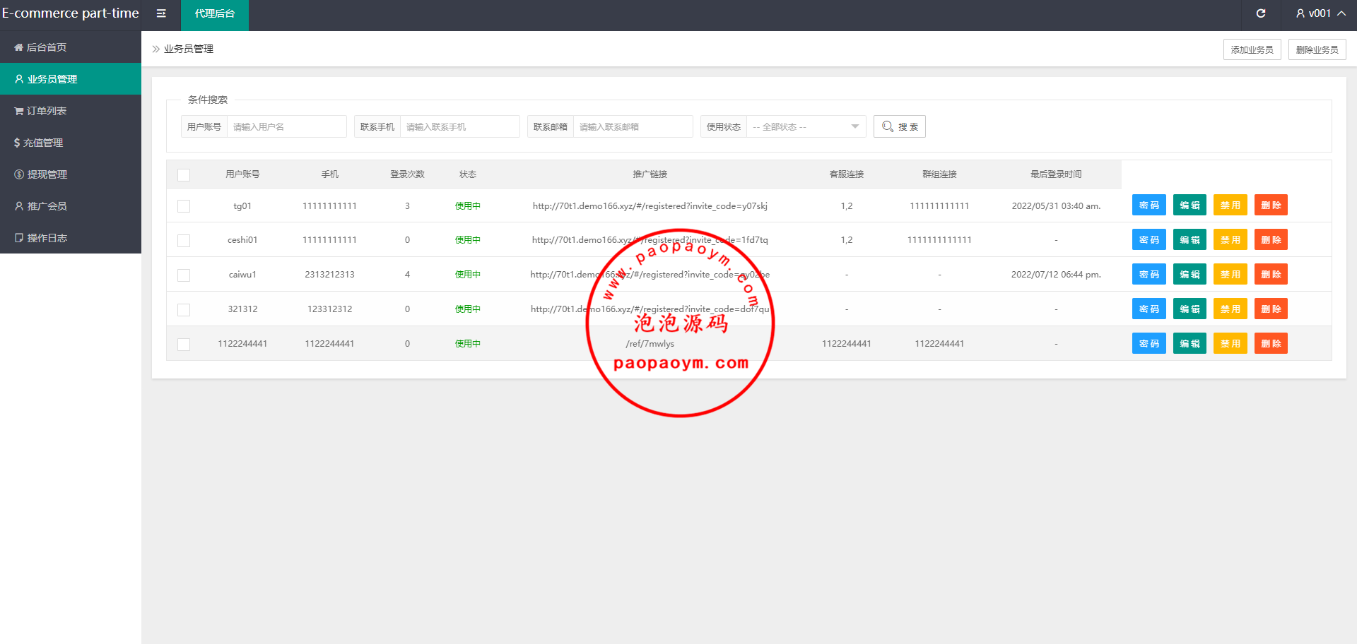 带后台派单,前端直接订单提交,带代理后台业务员推广
