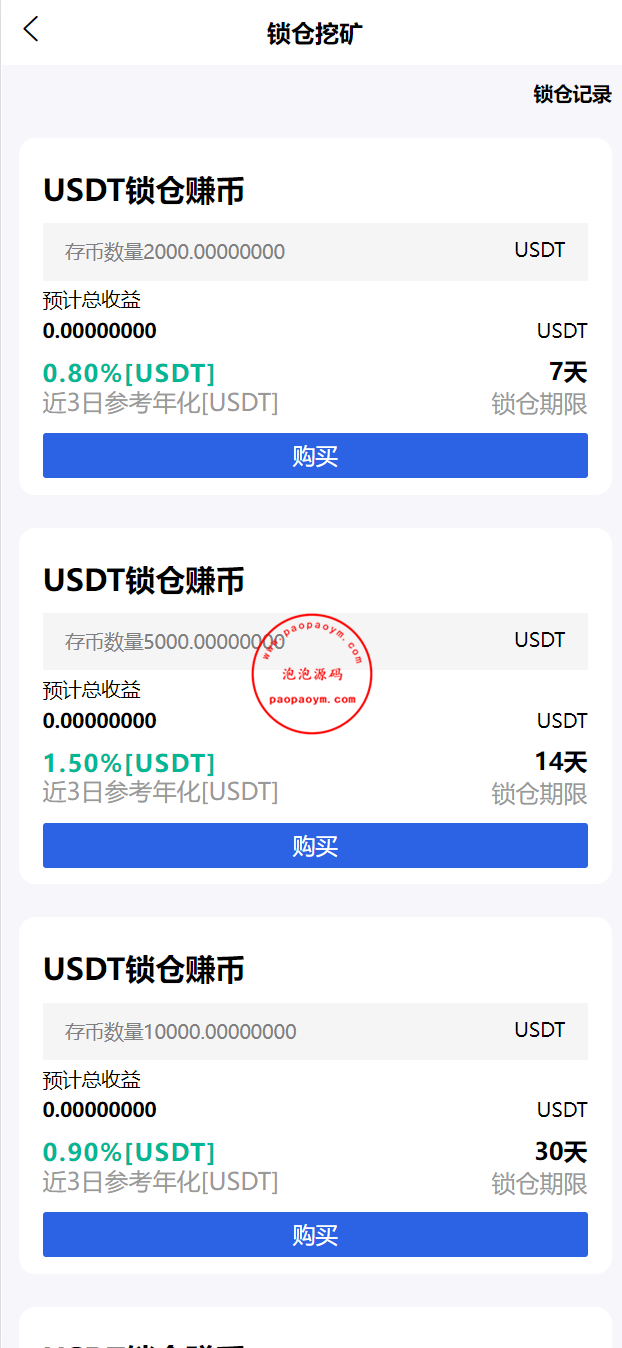 此套是以前的一套交易所二开的UI,支持锁仓挖矿、币币、