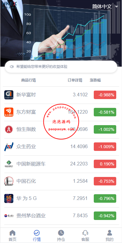 此套系统前端全新定制UI,二开了证券类型交易