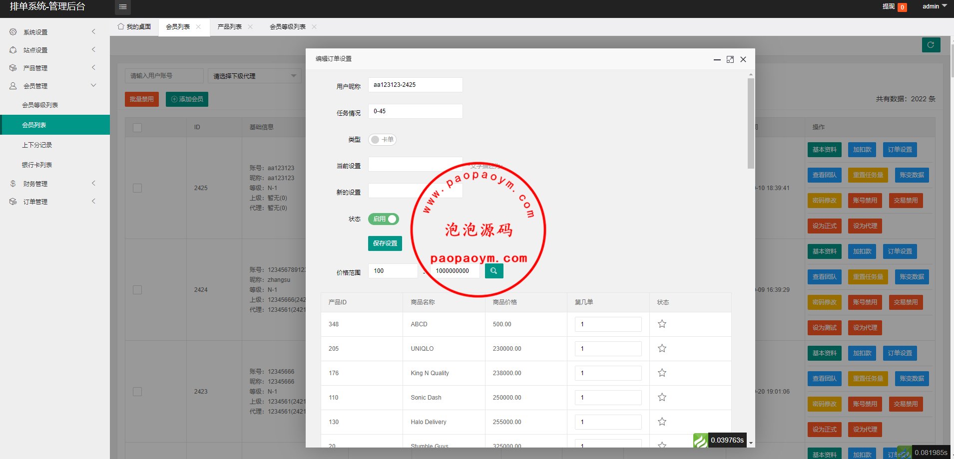 系统是别人运营下来的,代理是权限代理,后端带一个卡单连单完美使用