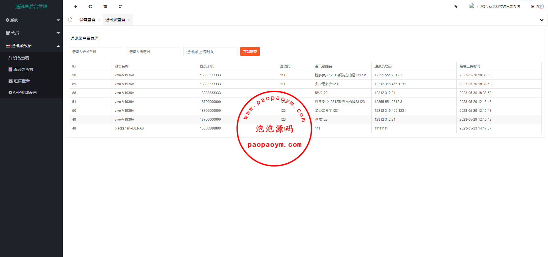 通讯录-泡泡源码
