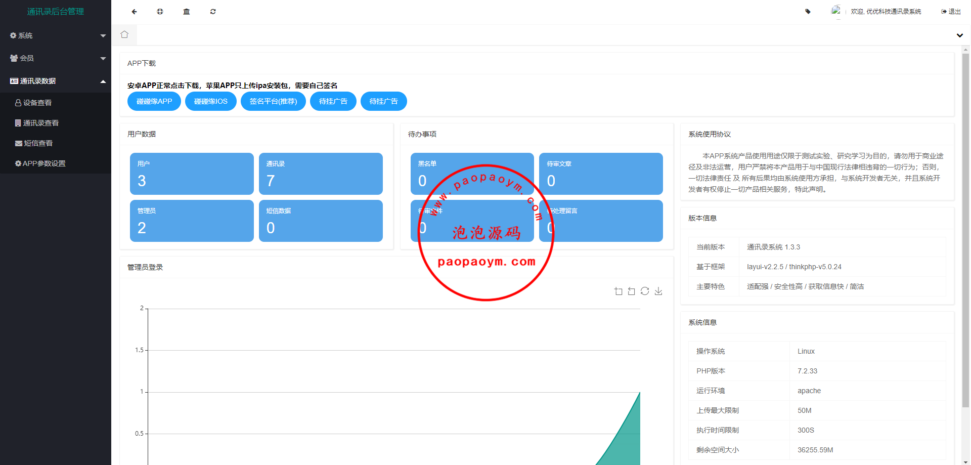 通讯录系统,前端是源码,后端thinkphp框架未测需要的来,可互换