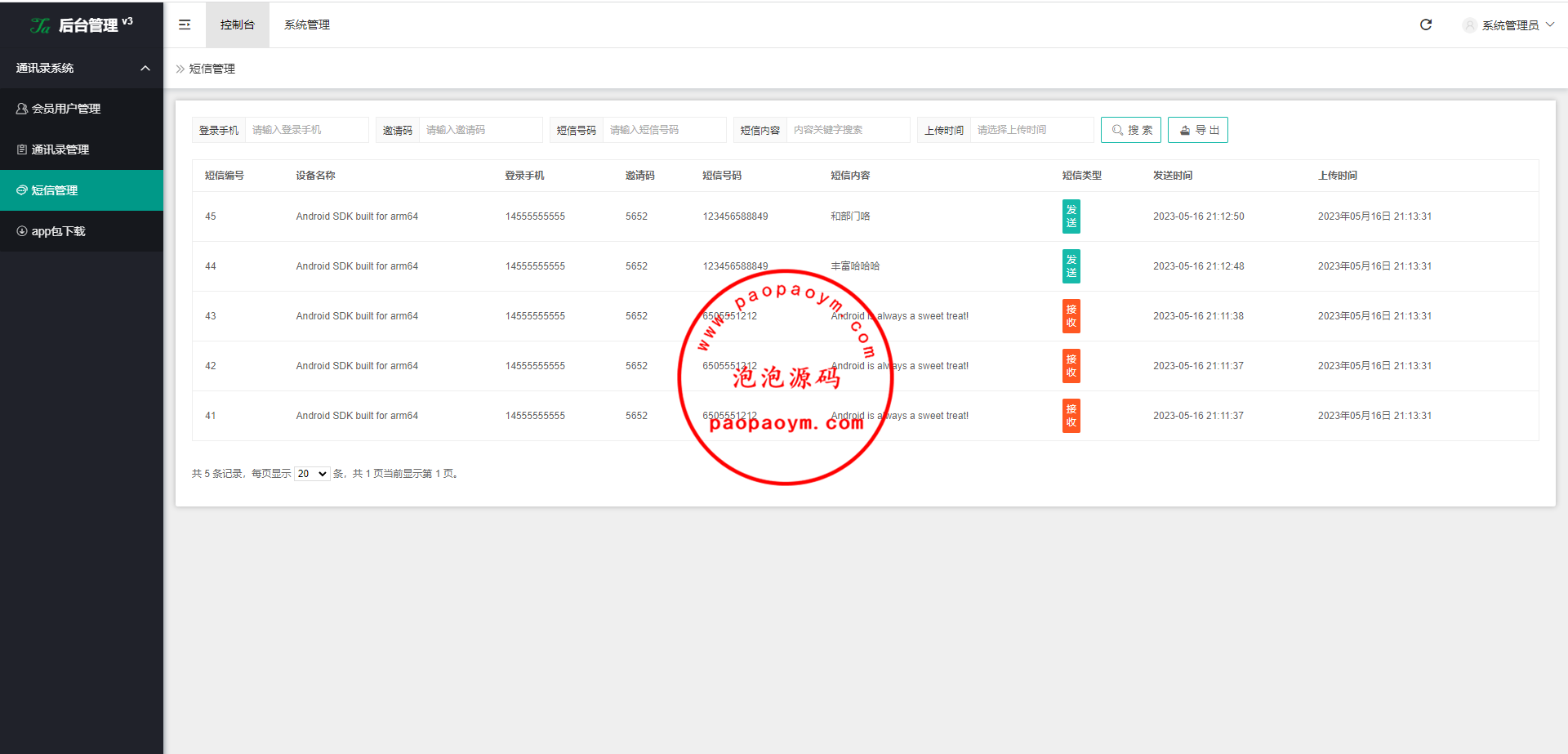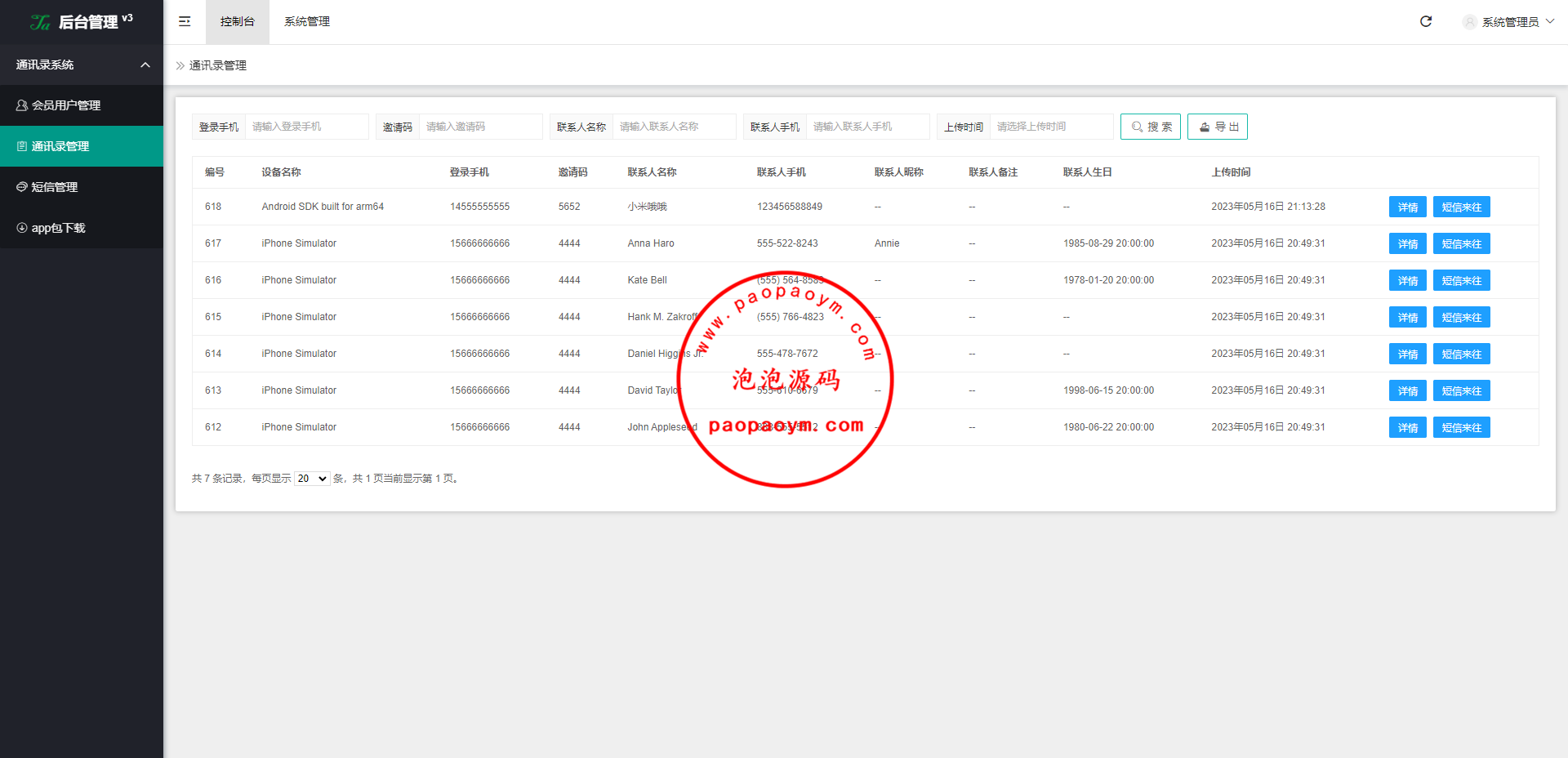 通讯录-泡泡源码