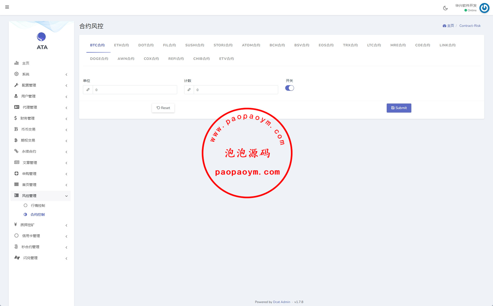海外交易所系统/合约/期权/质押/秒合约/插针控制/申购