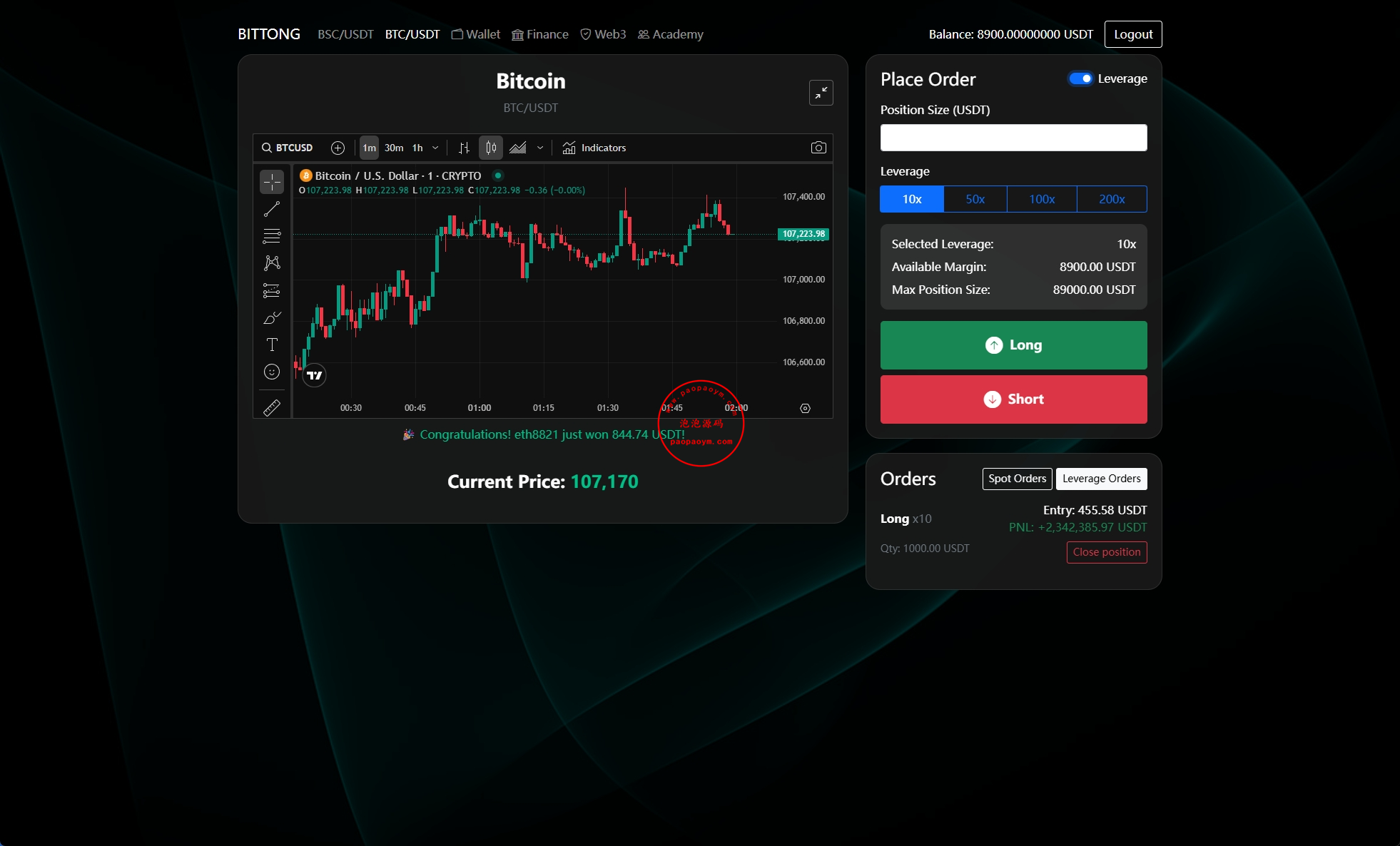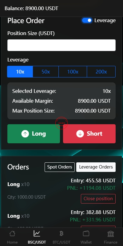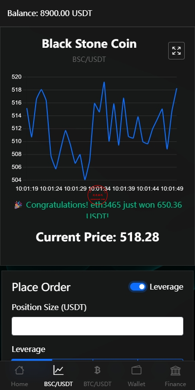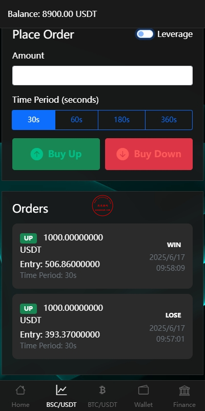 系统只有BSC跟BTC交易,支持秒合约跟杠杆交易