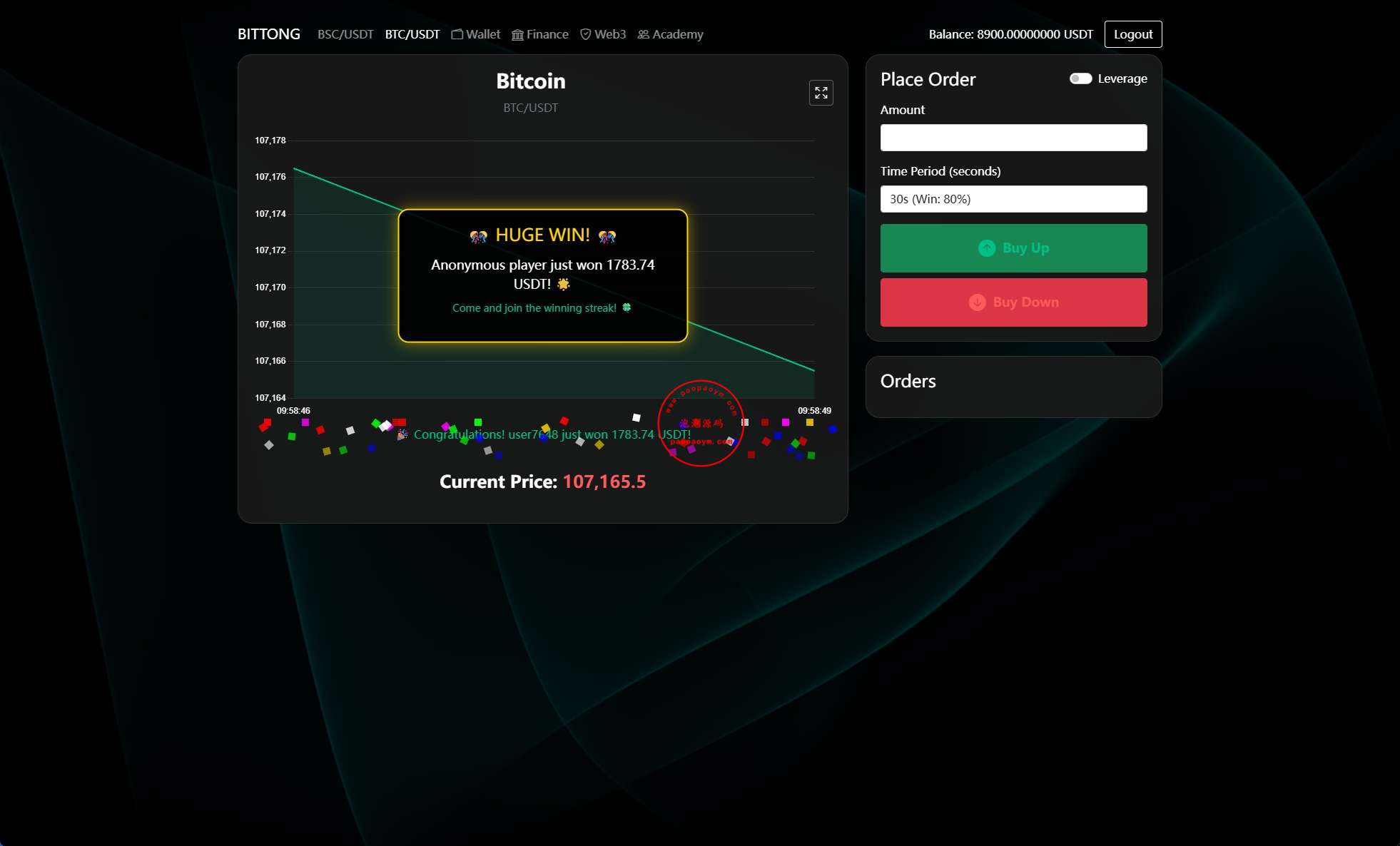 简约版交易所系统,前端自适应带获利动画