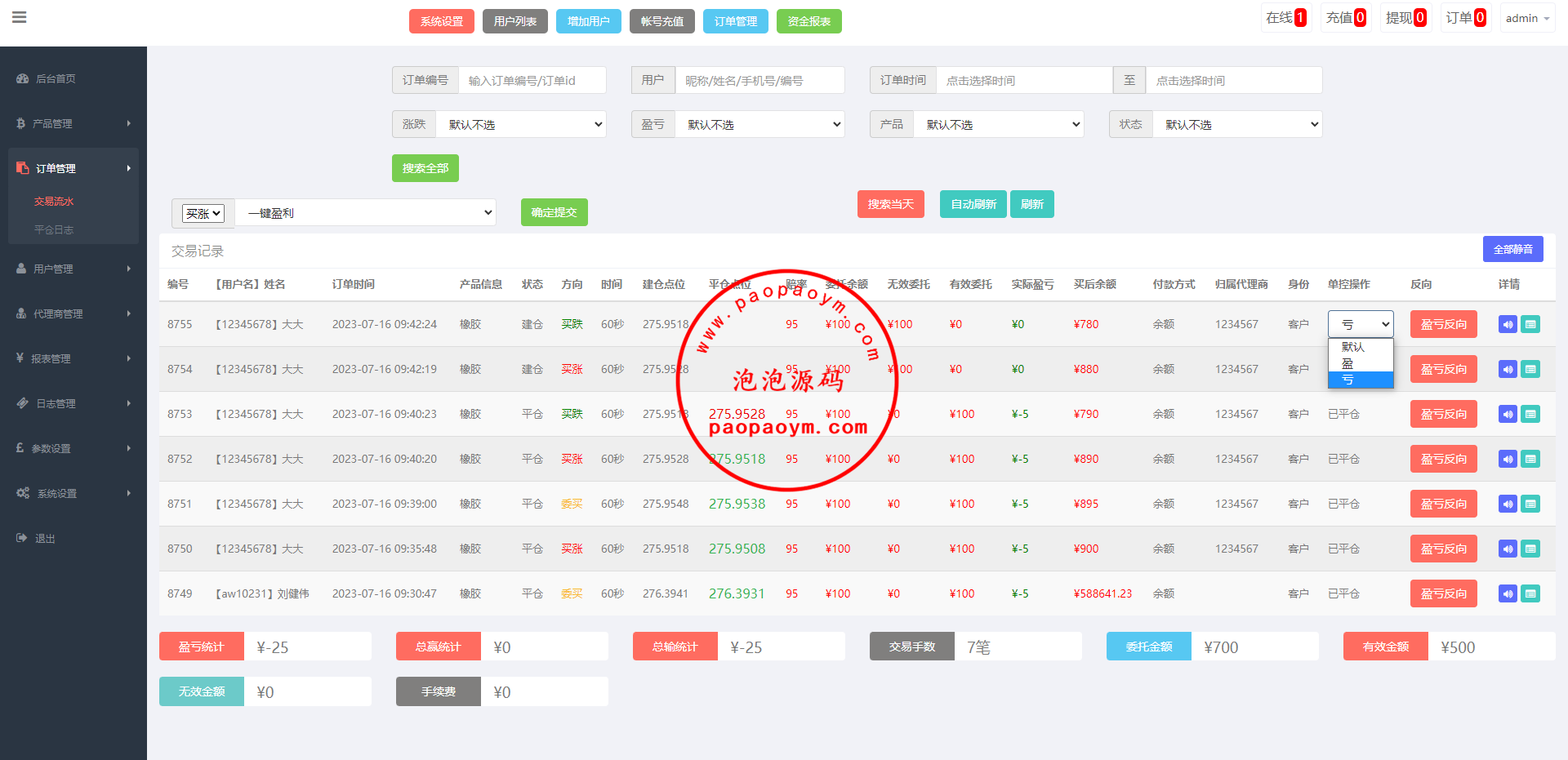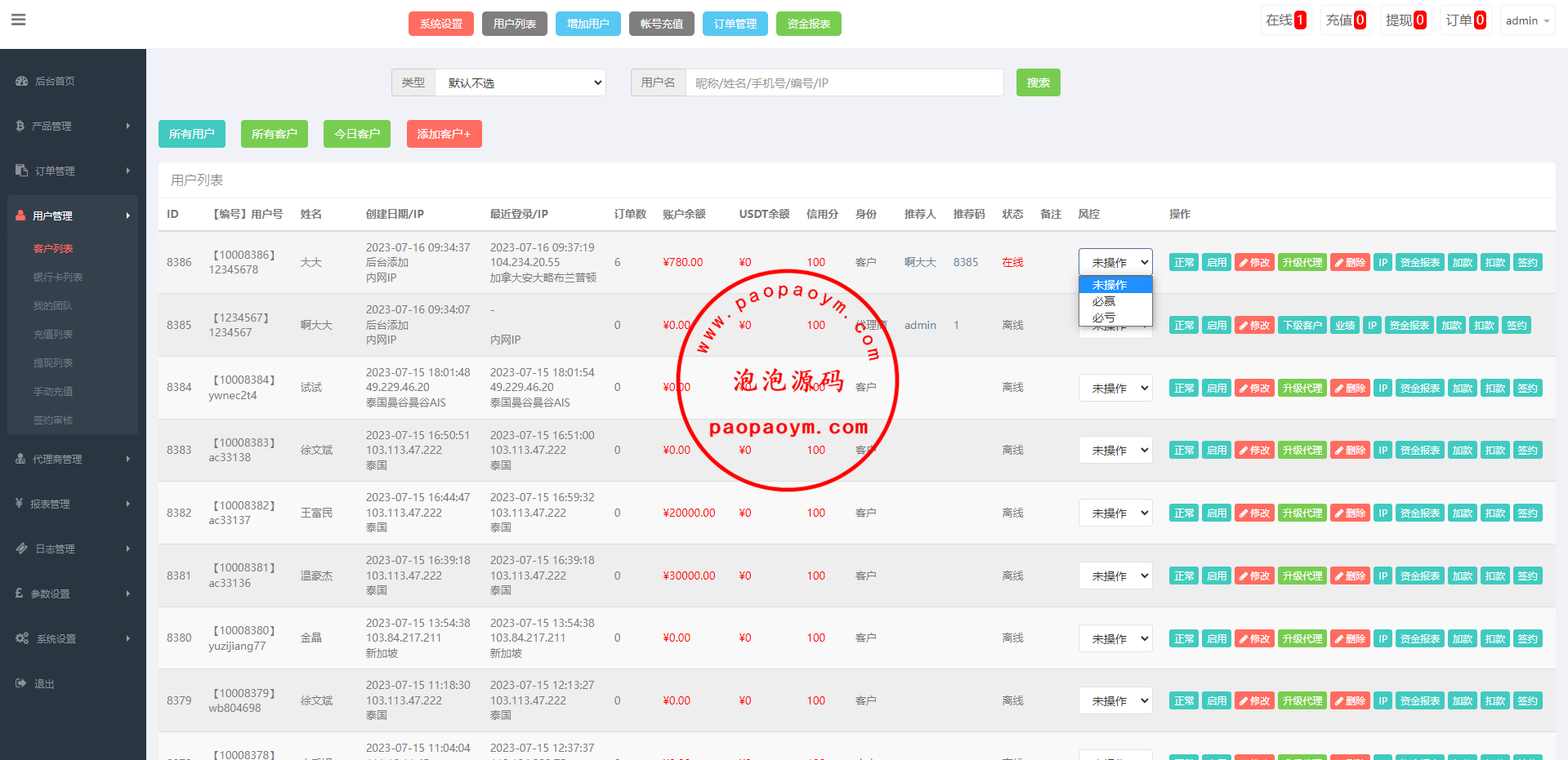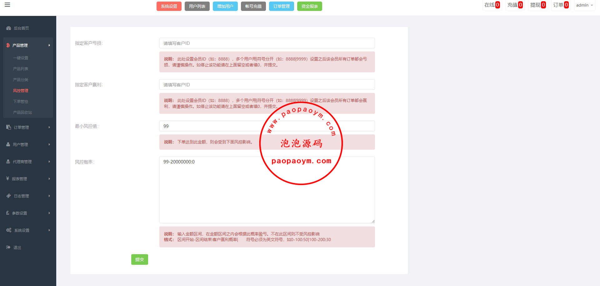 运营版微盘期货交易系统/微交易源码/代理后台/用户风控