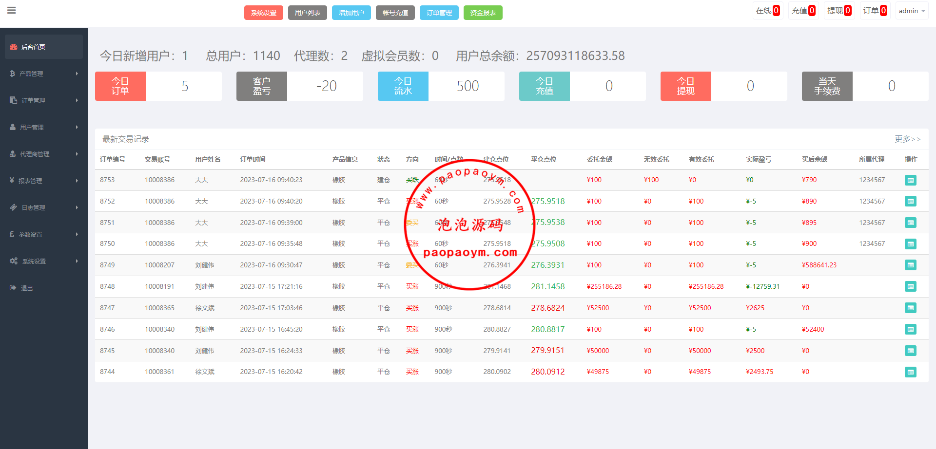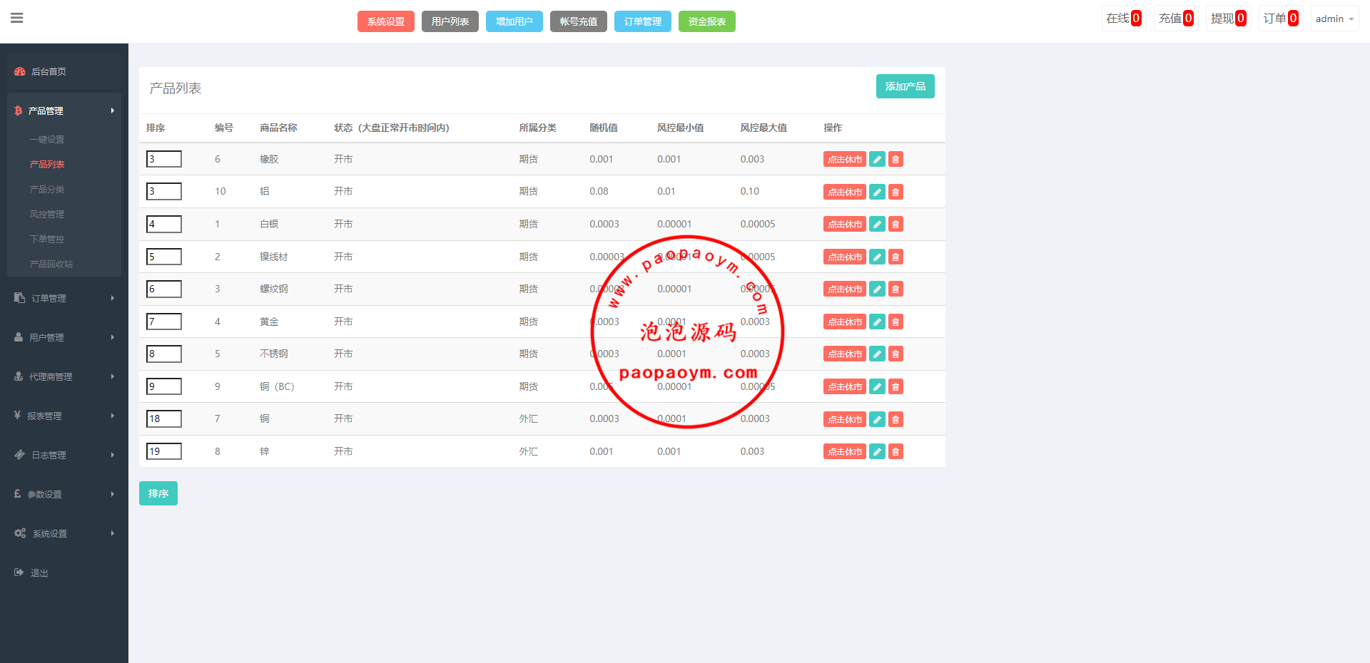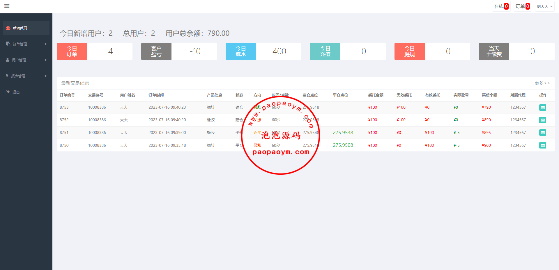 运营版微盘期货交易系统/微交易源码/代理后台/用户风控