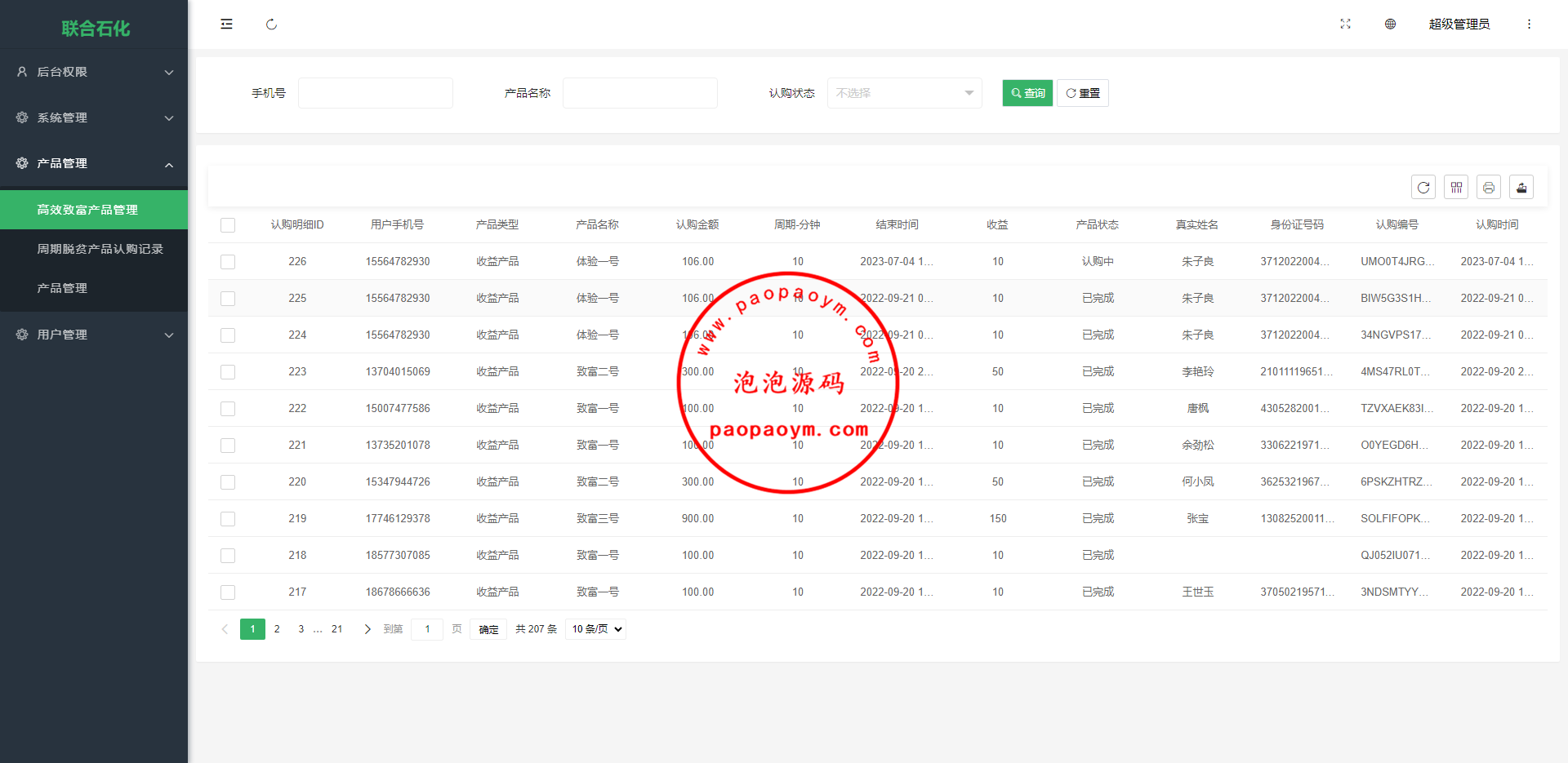 联合石化认购理财系统前端使用uinapp开发带源码,后端thinkphp