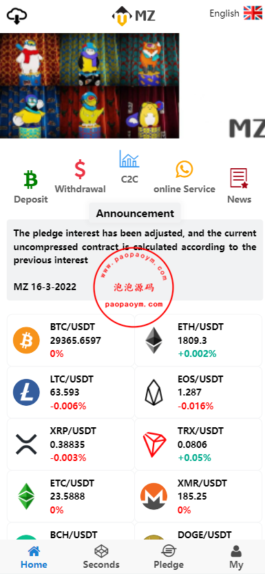全新UI多语言微交易微盘系统/秒合约/质押理财/至尊二开交易所