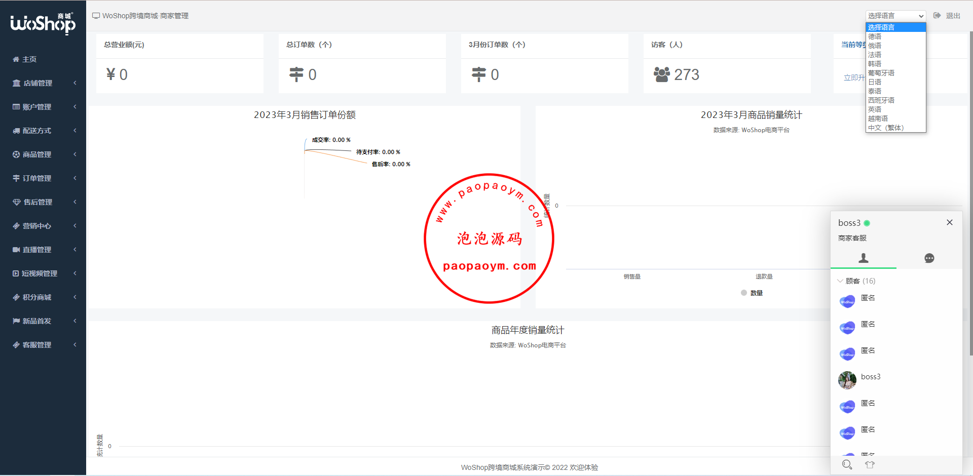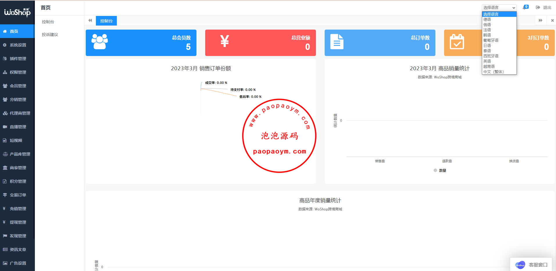 全套WoShop多商户跨境电商系统/付费插件/多语言/国际支付