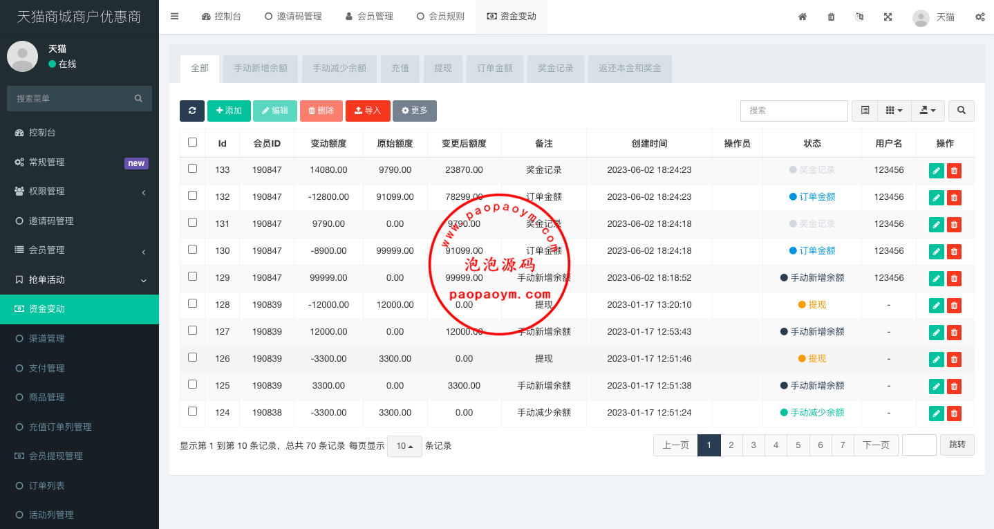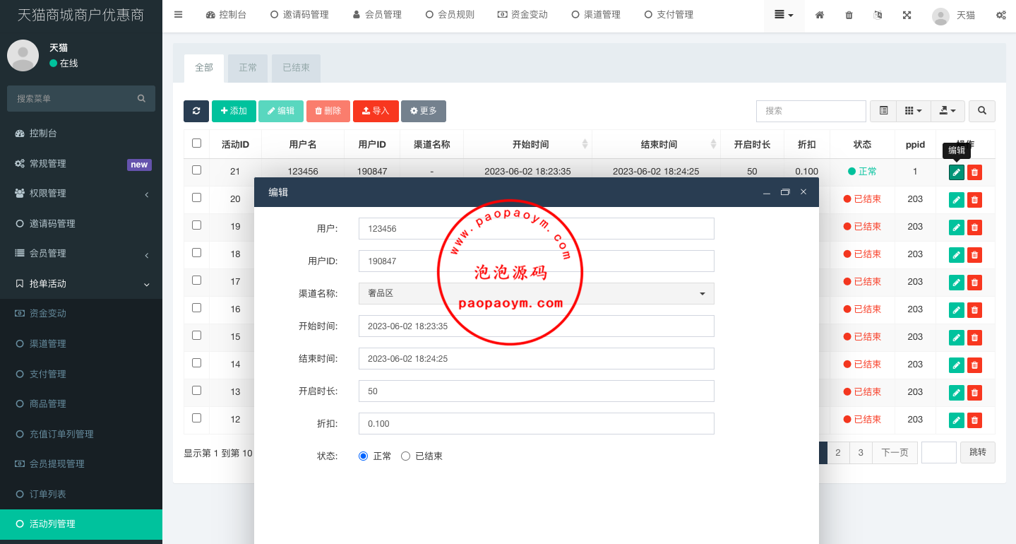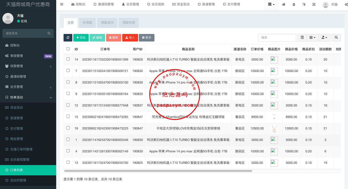 此套是全新开发的天猫商城优惠卷投资系统,后端使用fastadmin框架