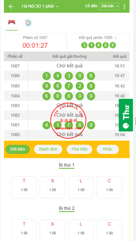 此套是纯越南的彩票cp系统,系统默认只有俩个一分钟彩种,但是前端添加了多