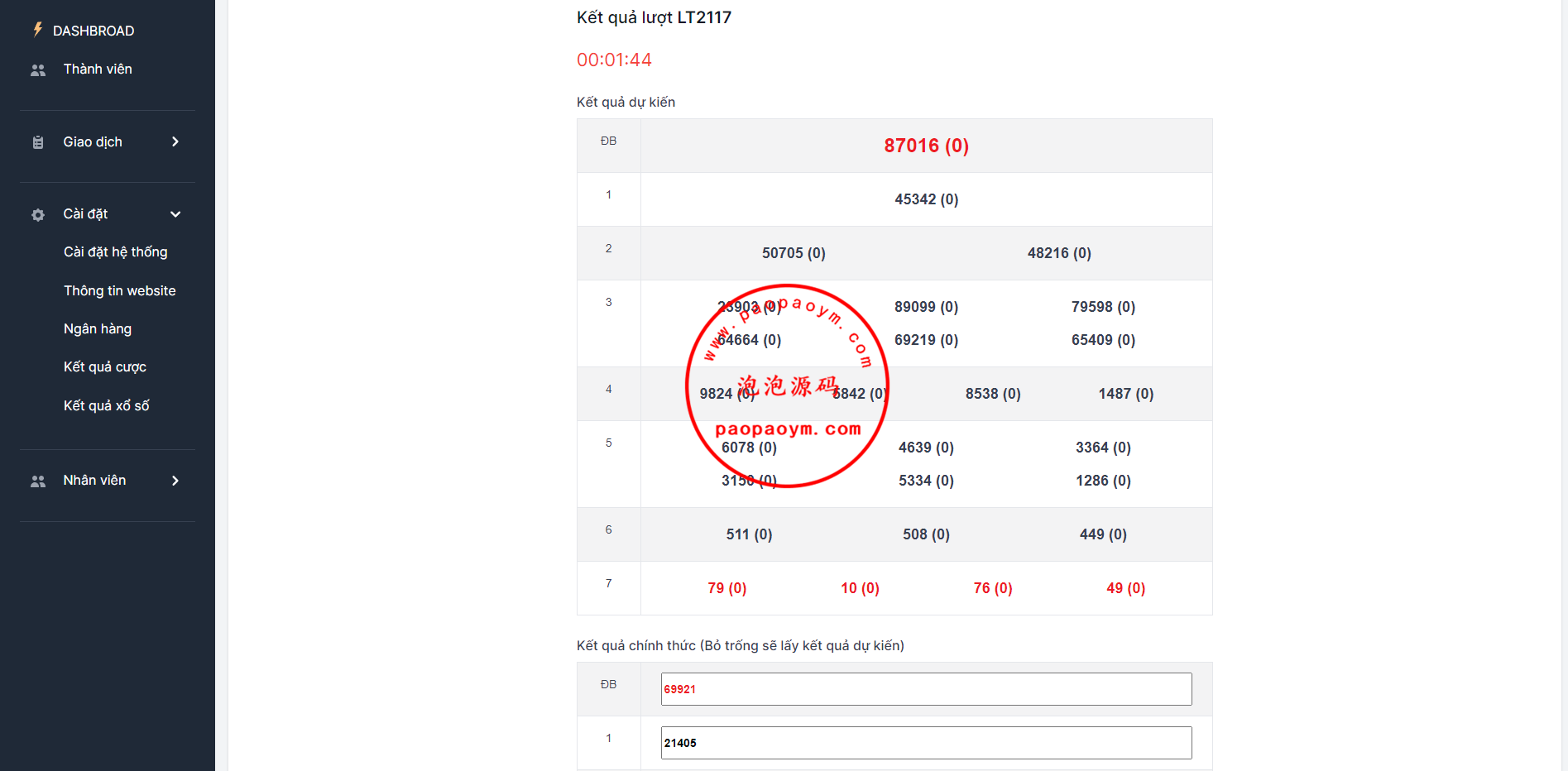 系统是主打越南的前后台均为越南语,采集开奖正常,带开奖预设等功能