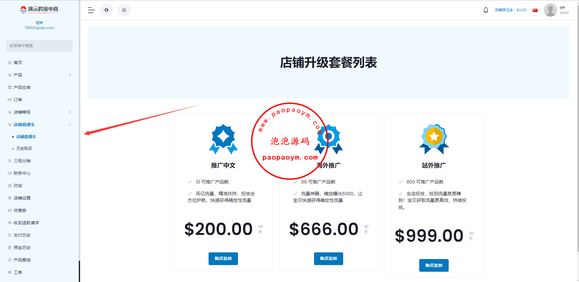 带最新的直通车+店铺保证金+三级分销+增加业务员代理功能