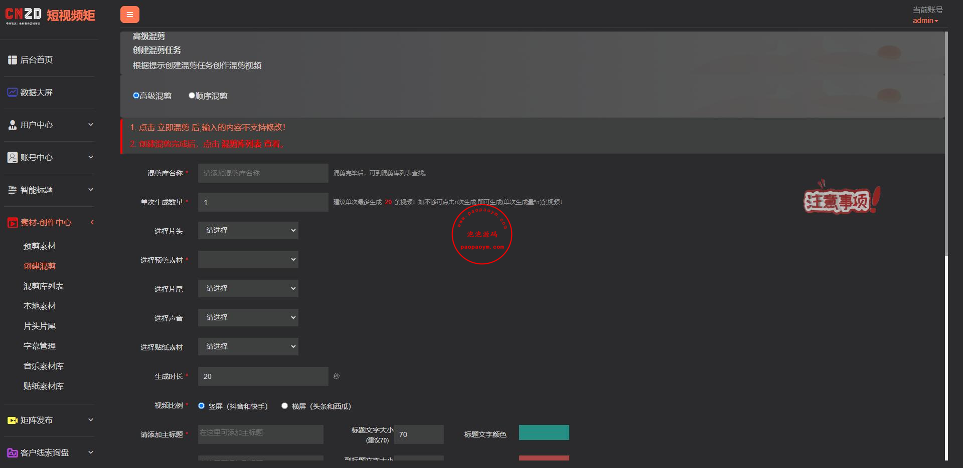 1、新增混剪音乐素材库管理;