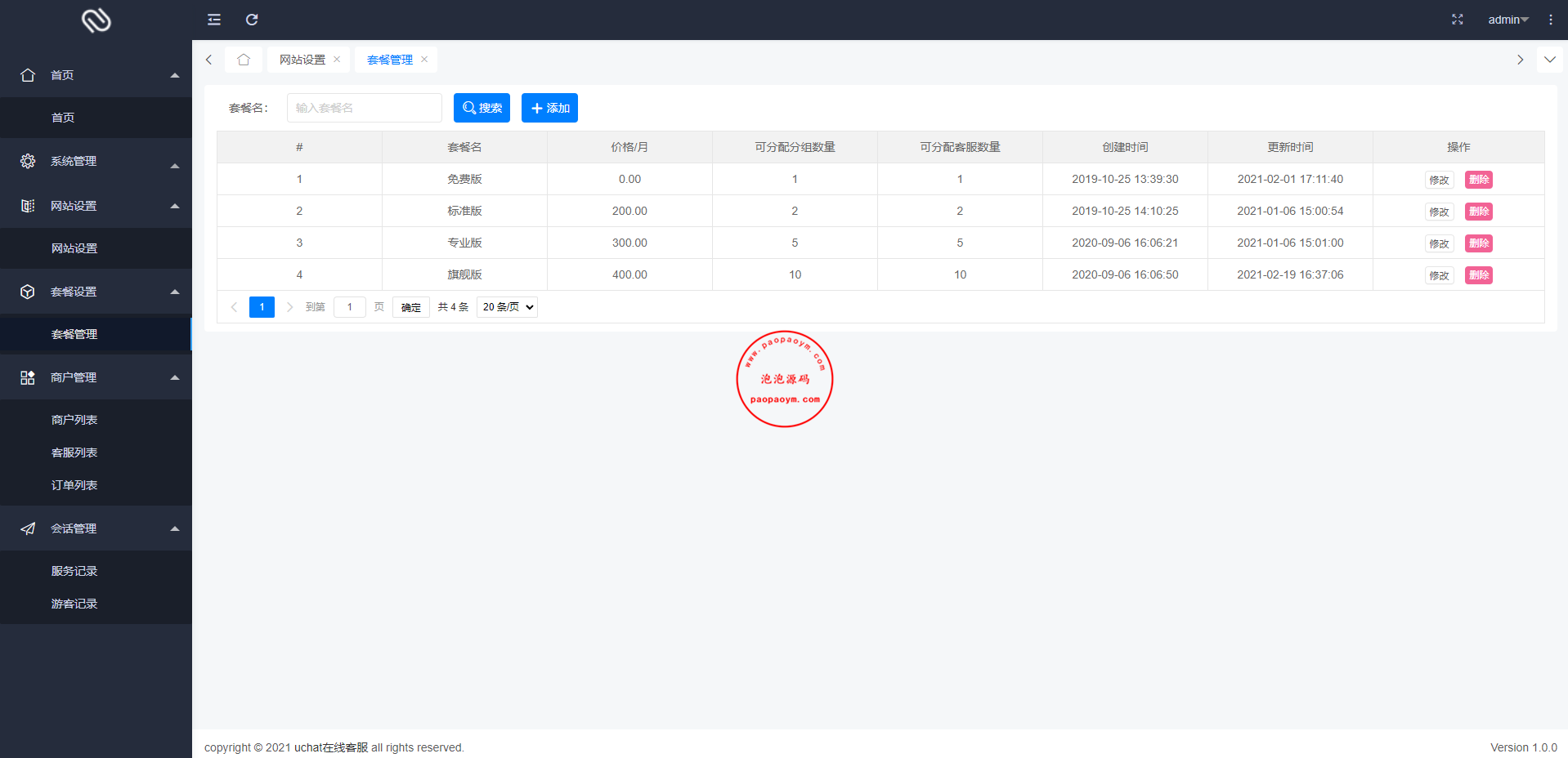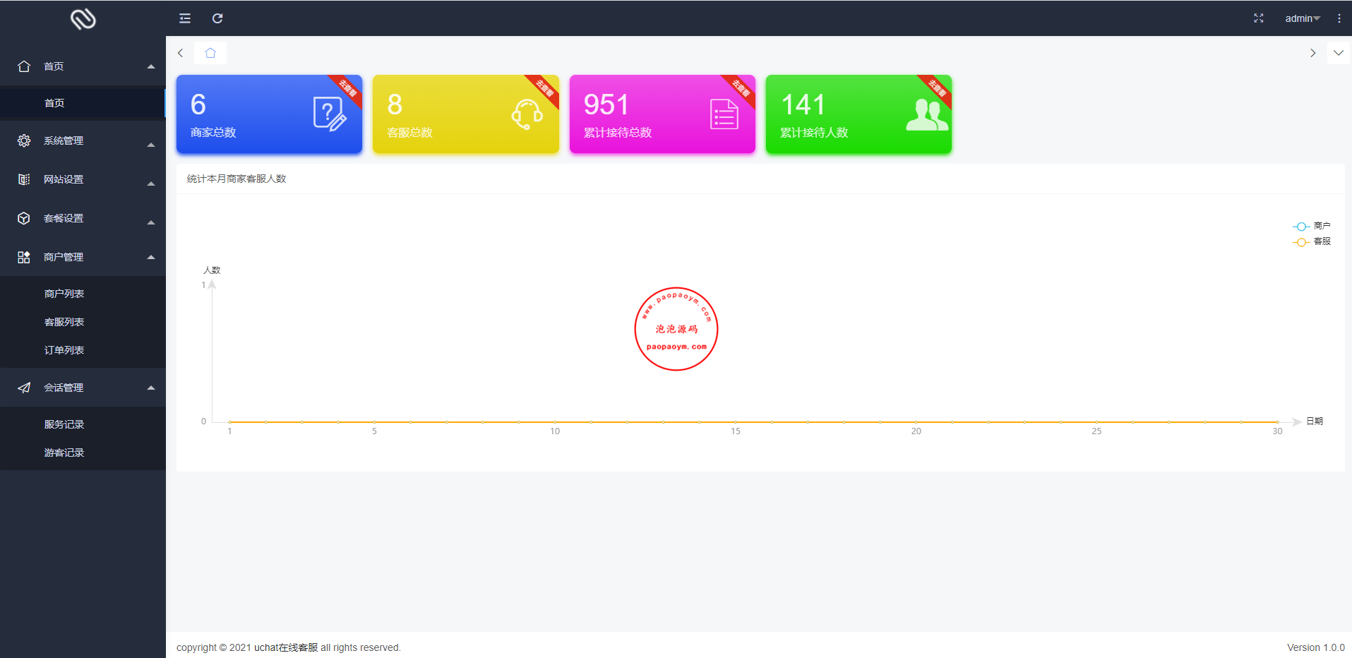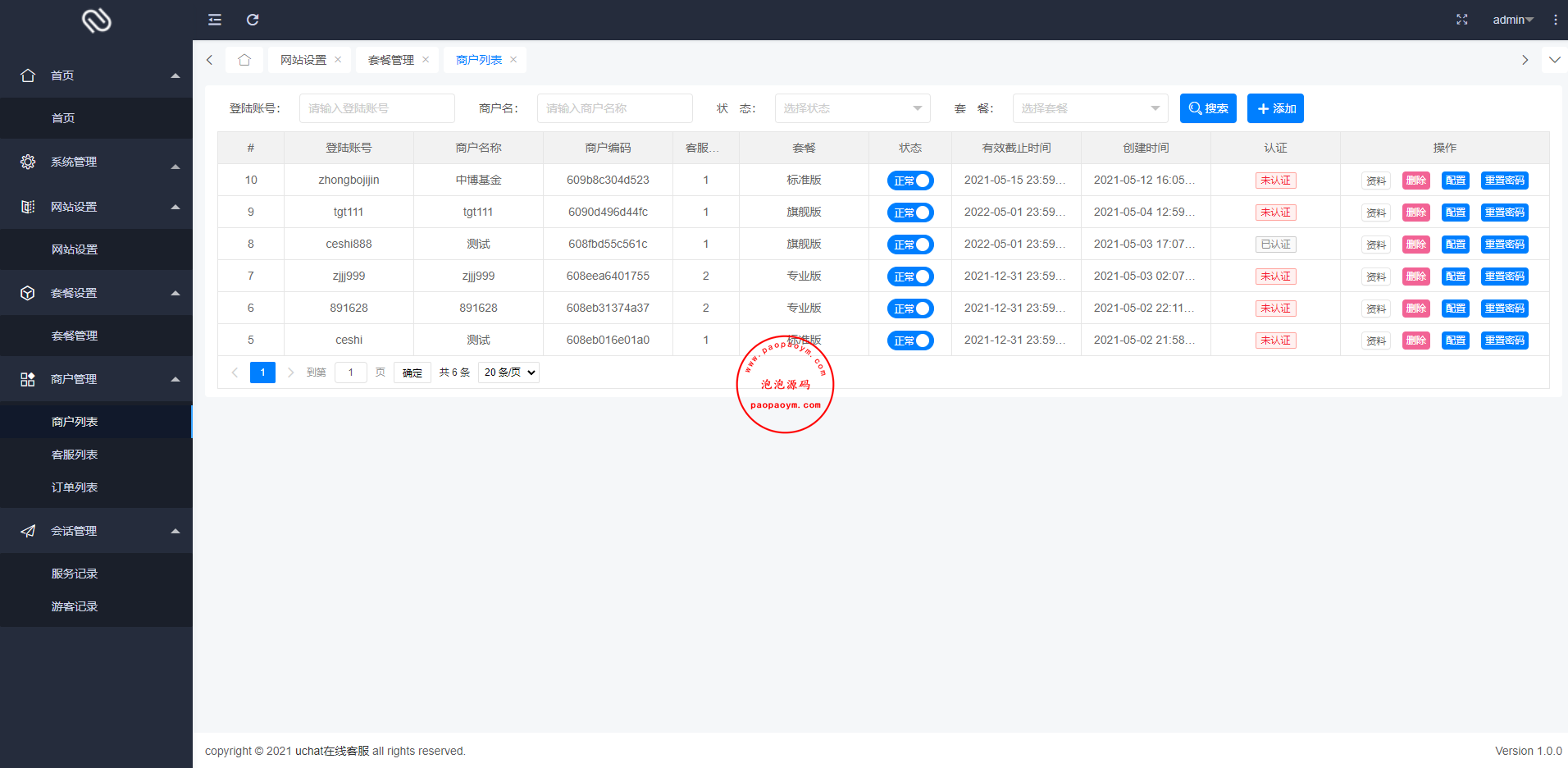 部署一套系统即可支持多个用户(网站)使用,每注册一个用户为一个商家,