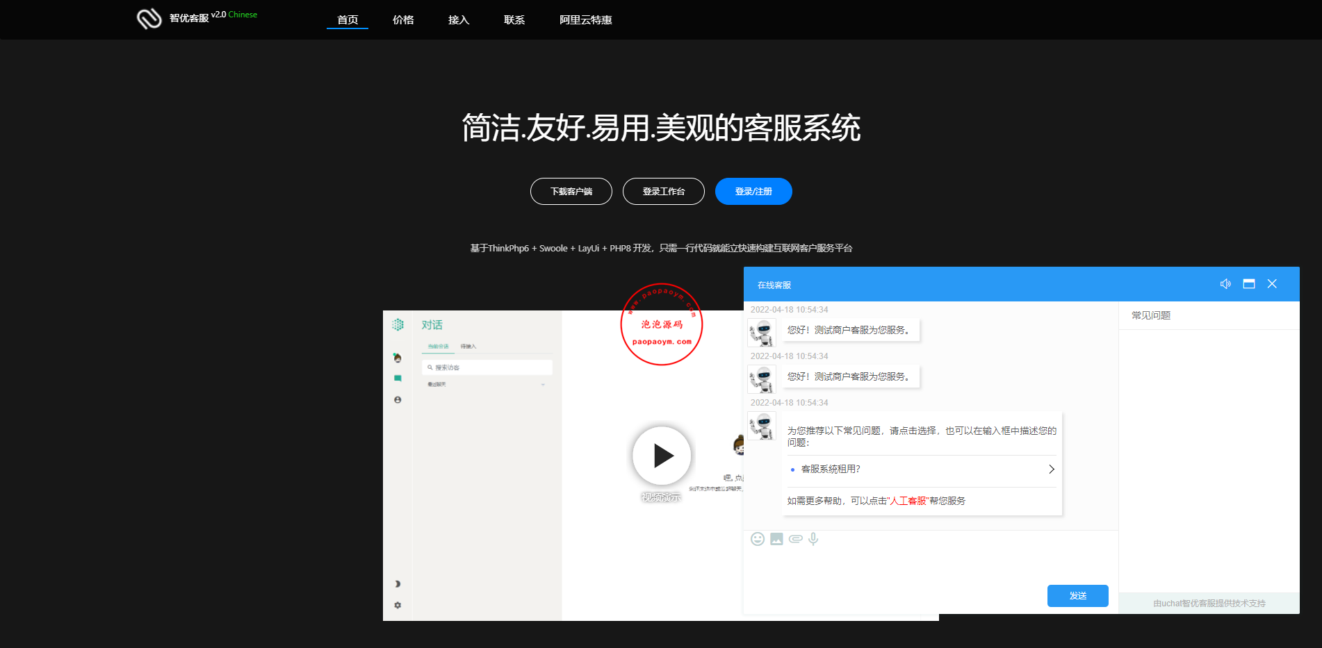基于ThinkPhp6 + Swoole + LayUi + PHP8 开发,智优客服系统具有超高稳定性,