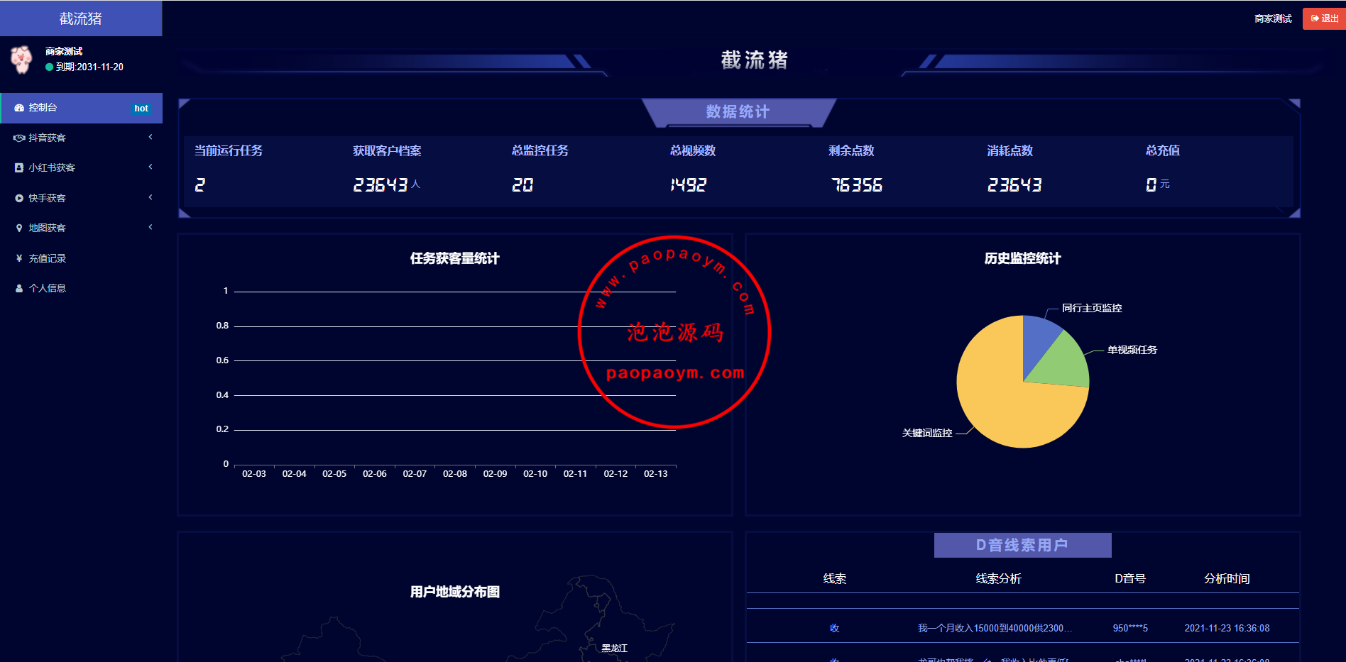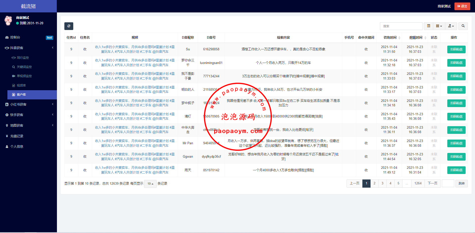 获客侠询盘系统,是一款用API大数据分析各大热门平台视频与笔记,筛选出评